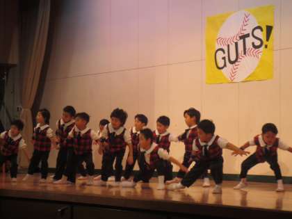 プログラムの15番は、ゆり組のゆうぎ(GUTS!)です。とてもかっこよく踊っていました。