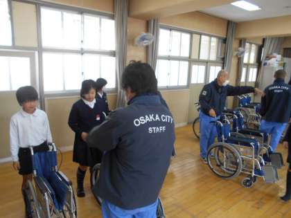 一人一人が車椅子にふれ、慎重に操作をしていました。