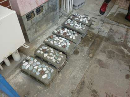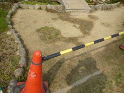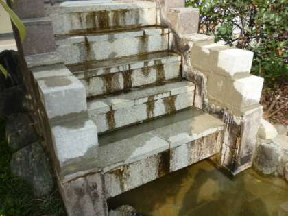 セメイトが固まるまで、しばらくは滝の流れを止めています。また、今日明日の2日間は小川の周辺には近付かないようにしてください。