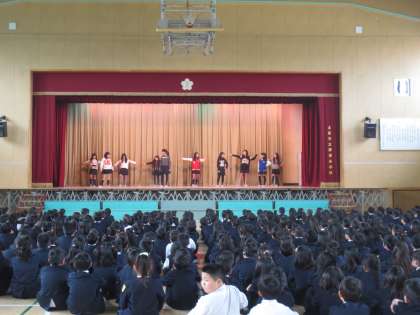 今日の集会はバトン&ダンスクラブの児童が、一年間の練習の成果を発表してくれました。スムーズなバトンの動き、リズミカルなダンスに、全員の児童が「すご〜い」と感じ、真剣な眼差しで見ていました。