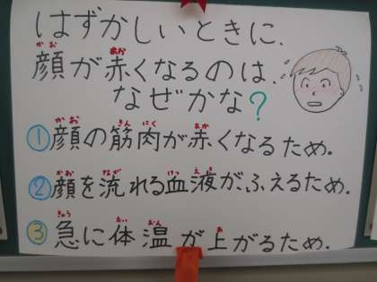 問題11「はずかしい時に顔が赤くなるのはなぜかな」