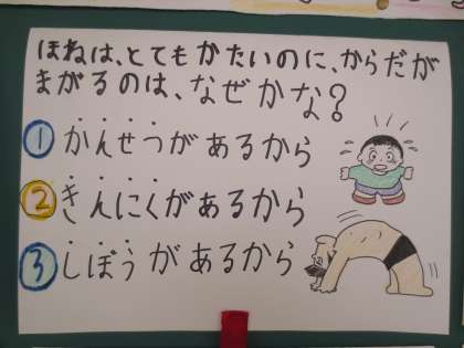 問題10「骨はとてもかたいのに、体が曲がるのはなぜかな」