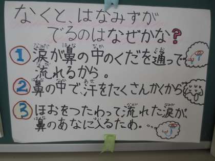 問題6「泣くと鼻水が出るのはなぜかな」