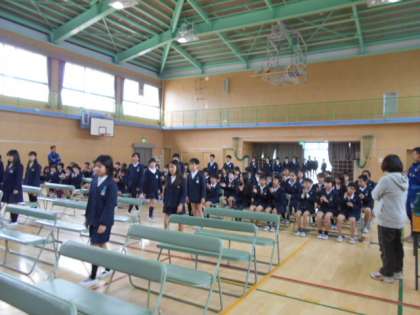 5年生・6年生それぞれが、卒業式の練習をしていましたが、今日初めて合同で練習をしました。式の初めから終わりまで通して練習しました。5年生も6年生も一人一人がやるべきことをきちんとし、みんなが心ひとつになったすばらしい練習態度でした。