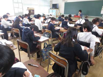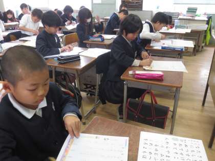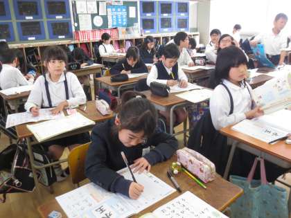 書き方の学習で、今日は毛筆ではなく硬筆の練習です。丁寧に一字一字しっかりと書いています。