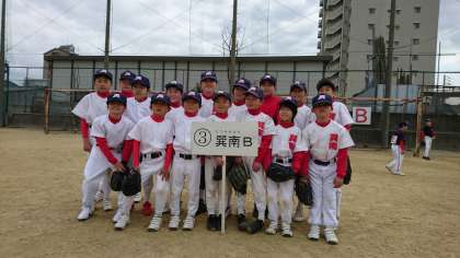 力一杯に戦った巽南ジュニアソフトボールのみなさんです。笑顔が輝いている写真ですね!