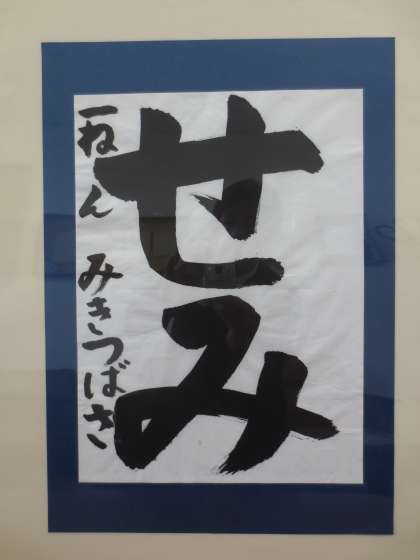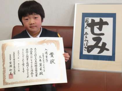 MOA美術館全国児童作品展の書写の部に出品した「せみ」作品です。毛筆で力強く堂々と書かれています。