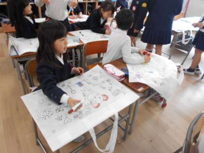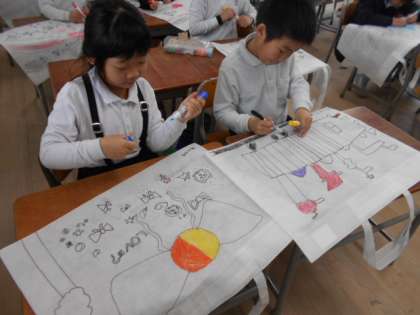 カラーペンを使って思い思いに自分の好きな絵を描きました。