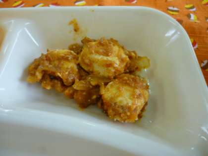 とうふ、牛挽肉、豚挽肉の入ったケチャップ味のグラタンです。