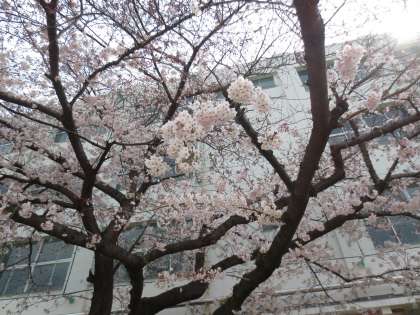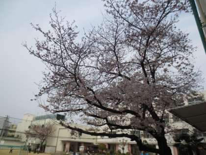 満開ではありませんが、校庭の桜が春の訪れを伝えています。3/31(水)