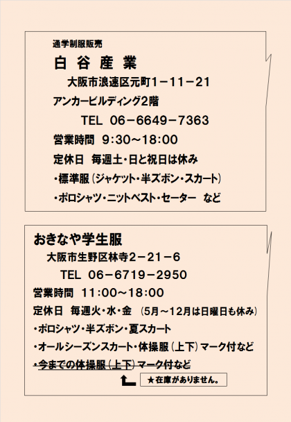 ★標準服(ズボン・スカート)等は、裏面の販売店で取り扱っています。