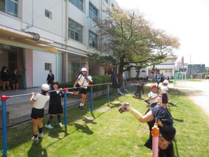 春の暖かい日差しの中、子どもたちは元気に運動場で遊んでいました。学習の時間も笑顔が多いですが・・・やはり遊んでいる時の笑顔が一番輝いています。