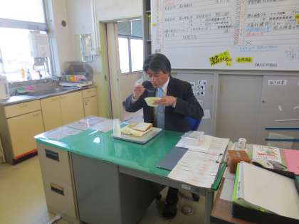 ※給食時間(12時25分)の30分前には、校長先生か教頭先生が検食しています。