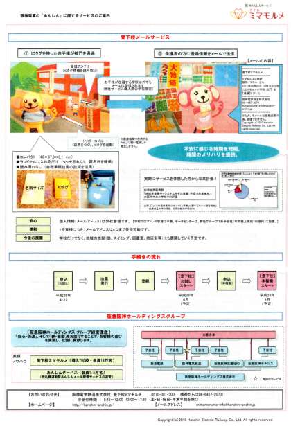 学校から送信している「保護者メール」とは違い、4月はじめに阪神電鉄より配布いたしました「登下校メールサービス」について再度お知らせいたします。