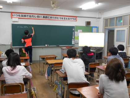 各教室に大型テレビ(60型)が設置されます。現在は各学年に1台で6台が設置されました。この大型テレビとパソコンを活用して授業を進める校内研修会を実施しています。4/28(木)