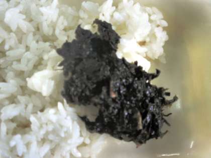 かつおぶし、しいたけ、きざみのりを使った手作りの佃煮です。ご飯に合うメニューです。