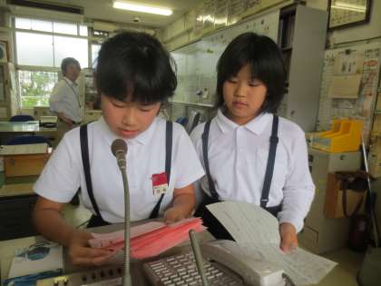 「手洗い」川柳が発表されるのを、みんなは楽しみにしています。今日も保健委員会の児童が、手洗いの習慣をつけてもらうため募集した「手洗い」川柳を次々に発表しています。