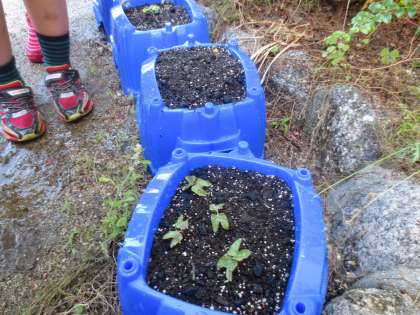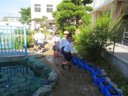 1年生が生活科の学習で植えた「アサガオ」の種に水をあげています。毎日わすれずに水をあげています。どうですかと聞くと・・・芽が出てきたと笑顔でこたえてくれました。