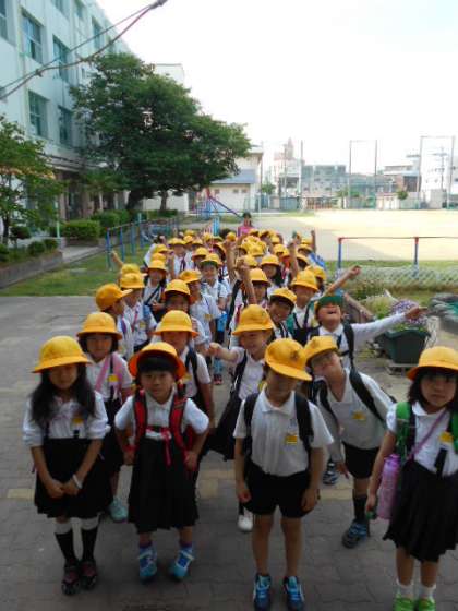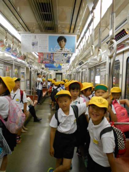 さぁ、出発だ!南巽駅から阿波座に乗り換え、大阪港まで、長い時間地下鉄に乗りました。子どもたちは、マナーもよく静かに乗っていました。