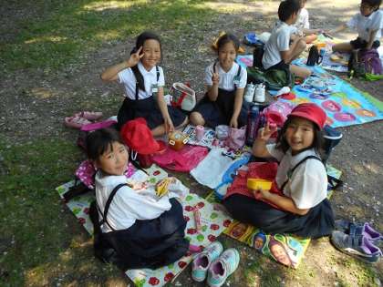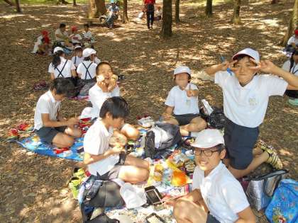オリエンテーリングの終了後は、「お弁当タイム」です。暑い中、3年生も4年生もお互いに力を合わせ、自分たちの力を十分に使い切った分、お弁当はとてもおいしかったです。
