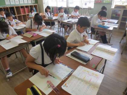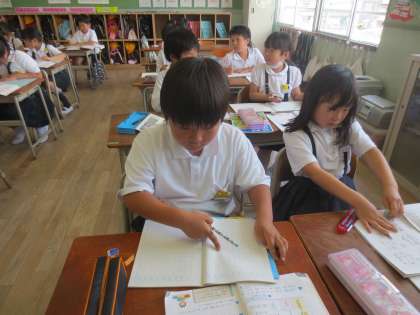 引き算の問題に取り組んでいます。みんな集中して問題を解いています。
