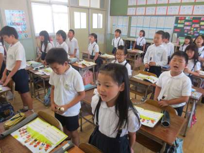とても声量があり、学校の外まで声が響き渡っていました。心をつなぐ歌声で、歌っている人も聞いている人もとても元気になりました。