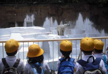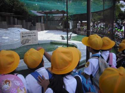 お昼を食べて、シロクマやペンギンを見に行きました。