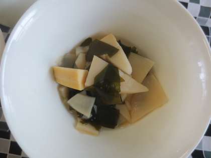 たけのこと生わかめを煮ています。旬のたけのこを使った料理です。
