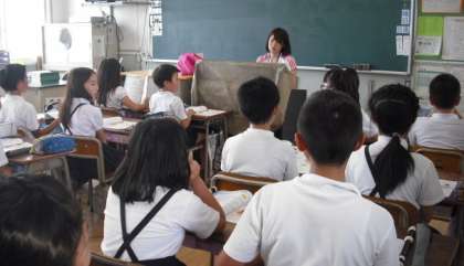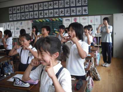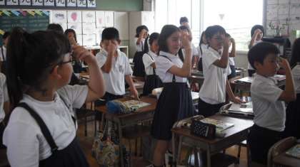 木曜日の午前中は、中学校の朝川先生が来られる日です。2時間目は、4年1組で音楽の授業がありました。