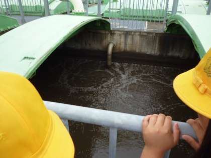 「反応漕」(微生物が水をきれいにする)「沈ちょう池」を見学しました。