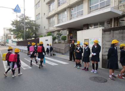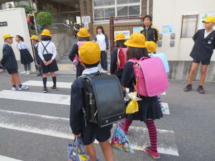 児童会の子ども達が、登校時間に正門前に立ち、元気よく声をかけます。普段より大きな「おはようございます」の声がひびいていました。