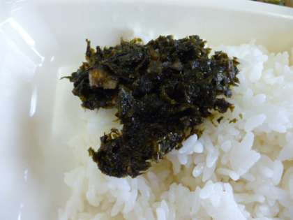かつおぶし、しいたけ、きざみのりを材料に学校で作ったつくだ煮です。ご飯にあう1品です。