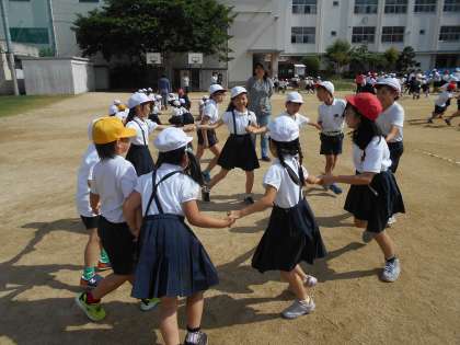 かなり速くまわっている班もあり、なかなか「おに」はリーダーにタッチできないようです。