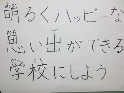 先日、児童会代表が集まって、今年の児童会の目標を決めました。「明るくハッピーな思い出ができる学校にしよう」に決まりました。全児童が力を合せて様々な活動に取り組み、みんながハッピーと感じるよう学校に・・・とても素晴らしいことです。児童会のみなさん頑張ってください。先生方もい〜っぱい応援します。