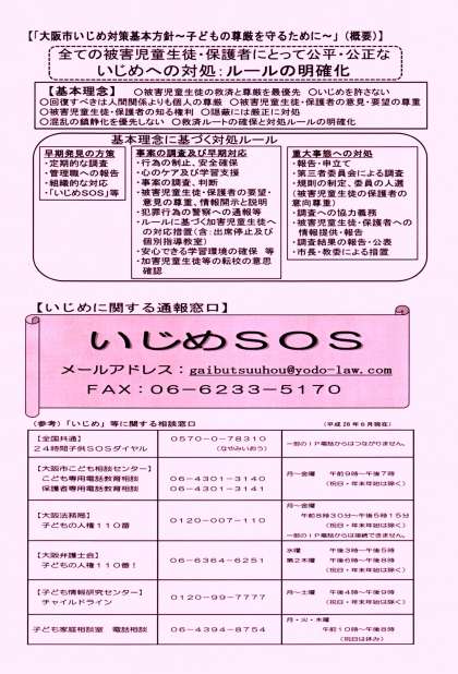 6/3 大阪市いじめ対策基本方針の配布