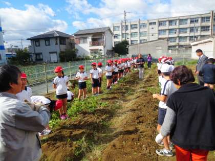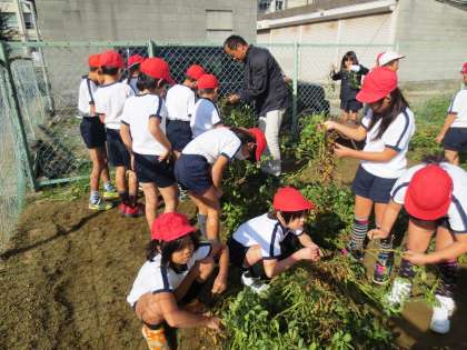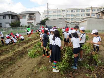 春の種まきから、水やりなどの世話をしてきた落花生を4年生が収穫しました。