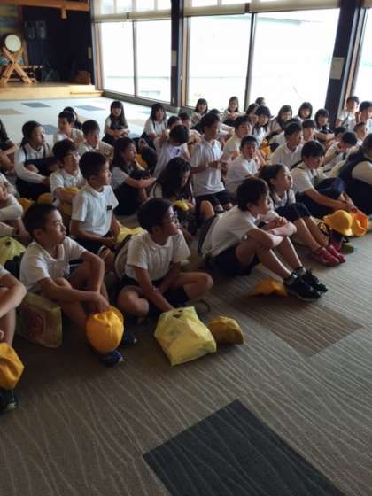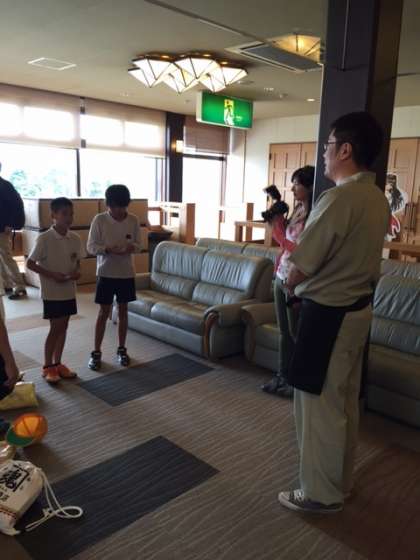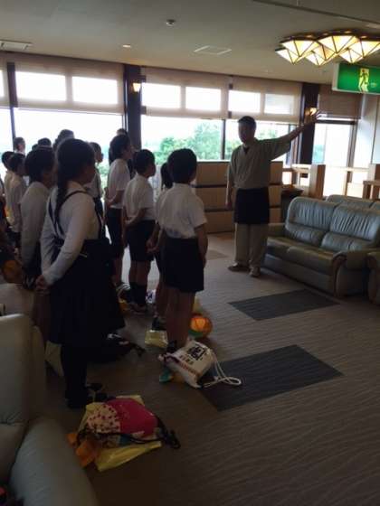 志摩スペイン村からバスに乗って宿舎につきました。みんな元気ですが、中には少し遊び疲れている人もいました。「開舎式」では、児童代表の子どもたちもきちんと挨拶ができました。