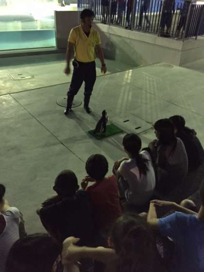「ペンギンタッチ」では、飼育員さんからペンギンの話がありました。飼育中のペンギンの中から1羽が、みんなの前に出てきました。