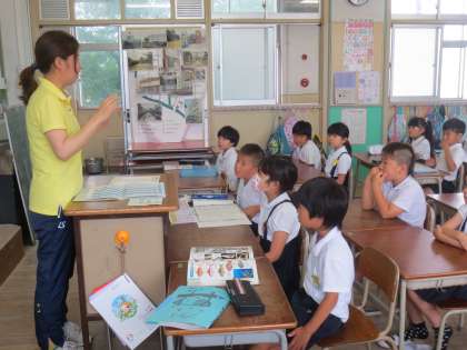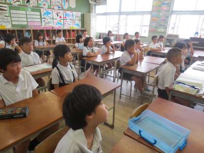 学級でザリガリを育てることについて話し合っています。よく知っている児童もいて、やる気満々でした。
