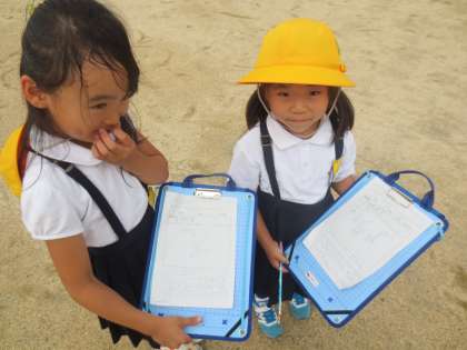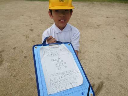 生活科の学習で2年生はミニトマトを育てています。実が少しずつ大きくなり、子どもたちは大喜びで観察をしていました。