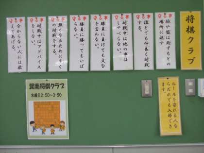 今日から、「巽南放課後将棋クラブ」がはじまりました。毎週水曜日、午後2時50分〜午後3時50分までします。巽南地域の方々が学校に来られ、将棋の指導をしていただきます。今日は、巽南第6振興町会会長諸冨真澄さんの指導で、子どもたちも一所懸命に将棋の駒を動かしていました。