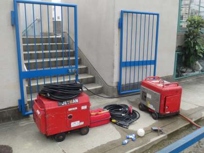 来週6/20(月)よりプール水泳が始まります。汚れがひどくプール清掃の業者の方も、長い時間続けて高圧洗浄をしていました。6/14(火)