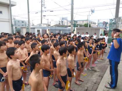 5・6年合同でのプール水泳です。プールへの入り方などは、高学年ですから何も指示しなくても安全に行動できます。さあっ!プール水泳がはじまりました。一人一人が頑張って、この夏の泳力目標を達成させてくださいね。