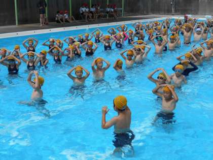 3・4年合同でのプール水泳です。プールに入るときのルールを思いだし、どの児童もしっかりと守って水泳の学習をしています。泳力の目標を決め、一人一人が頑張って、目標を達成させてくださいね。