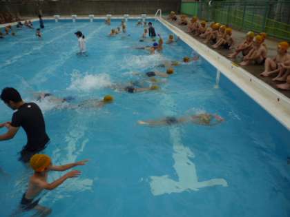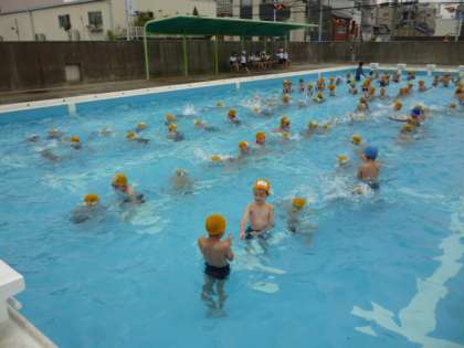 今年初めての水泳学習。水中ジャンケン、ふし浮きなど上手にできました。
