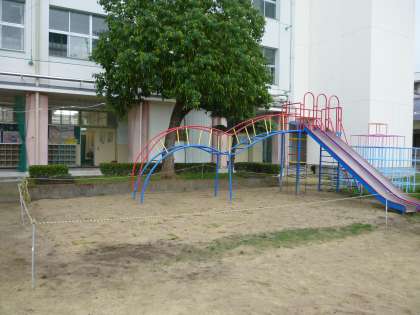 9月まで、ジャングルジム、滑り台は使用できませんが、芝生が生えてくるのを観察して待ちましょう。