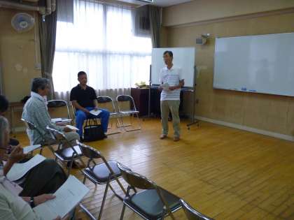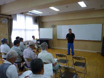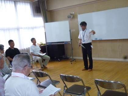 緑化(芝生補植)作業の前に、多目的室で緑化実行委員会を開催しました。