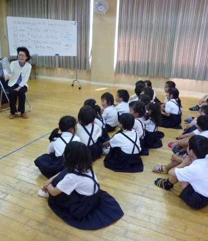 多目的室に集まったときは、ザワザワしていた子ども達ですが、お話が進むにつれて、どんどんお話の中へ入っていき、楽しそうに、真剣に聞き入っていました。