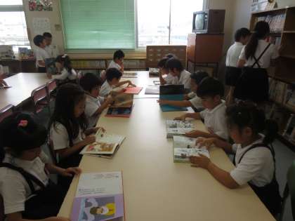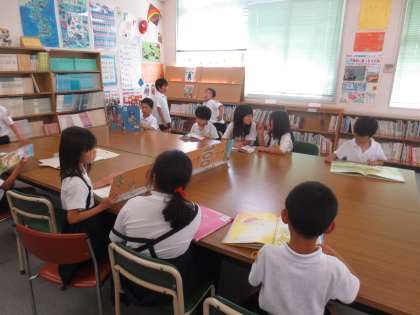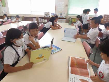 今日は雨天のため運動場が使えず、図書館にたくさんの児童がやってきてくれました。