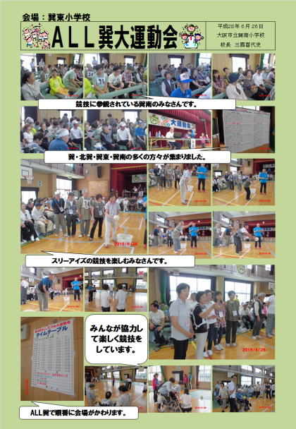 巽東小学校の体育館で、オール巽の大運動会が行われました。オール巽のつながりを深め、連携強化を図る大運動会です。みなさん元気にスポーツ活動に取り組み、巽の絆を深めておられました。様子を載せております。ご覧ください。
